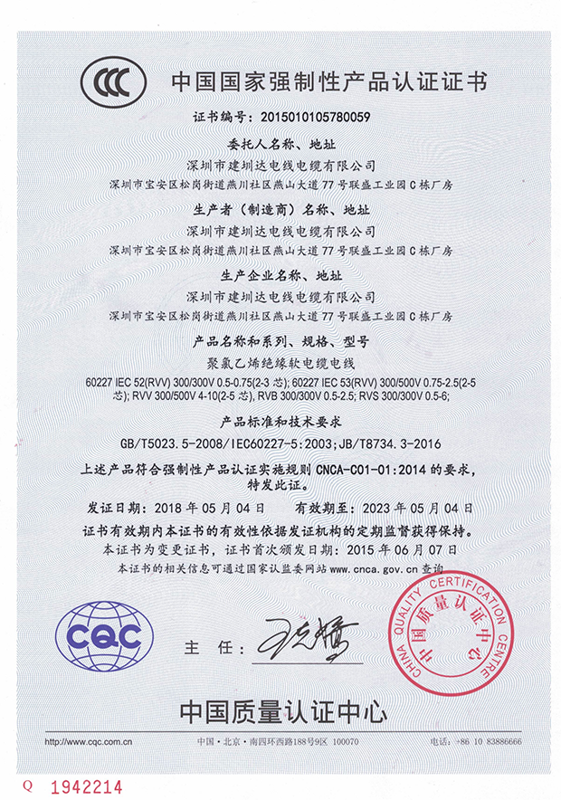 建圳達(dá)電纜立足于中國深圳,擁有技術(shù)精湛的隊(duì)伍、現(xiàn)代化生產(chǎn)設(shè)備、精密的檢測儀器,從原材料、生產(chǎn)、成品嚴(yán)格按照國家標(biāo)準(zhǔn)檢測,通過多個(gè)認(rèn)證。